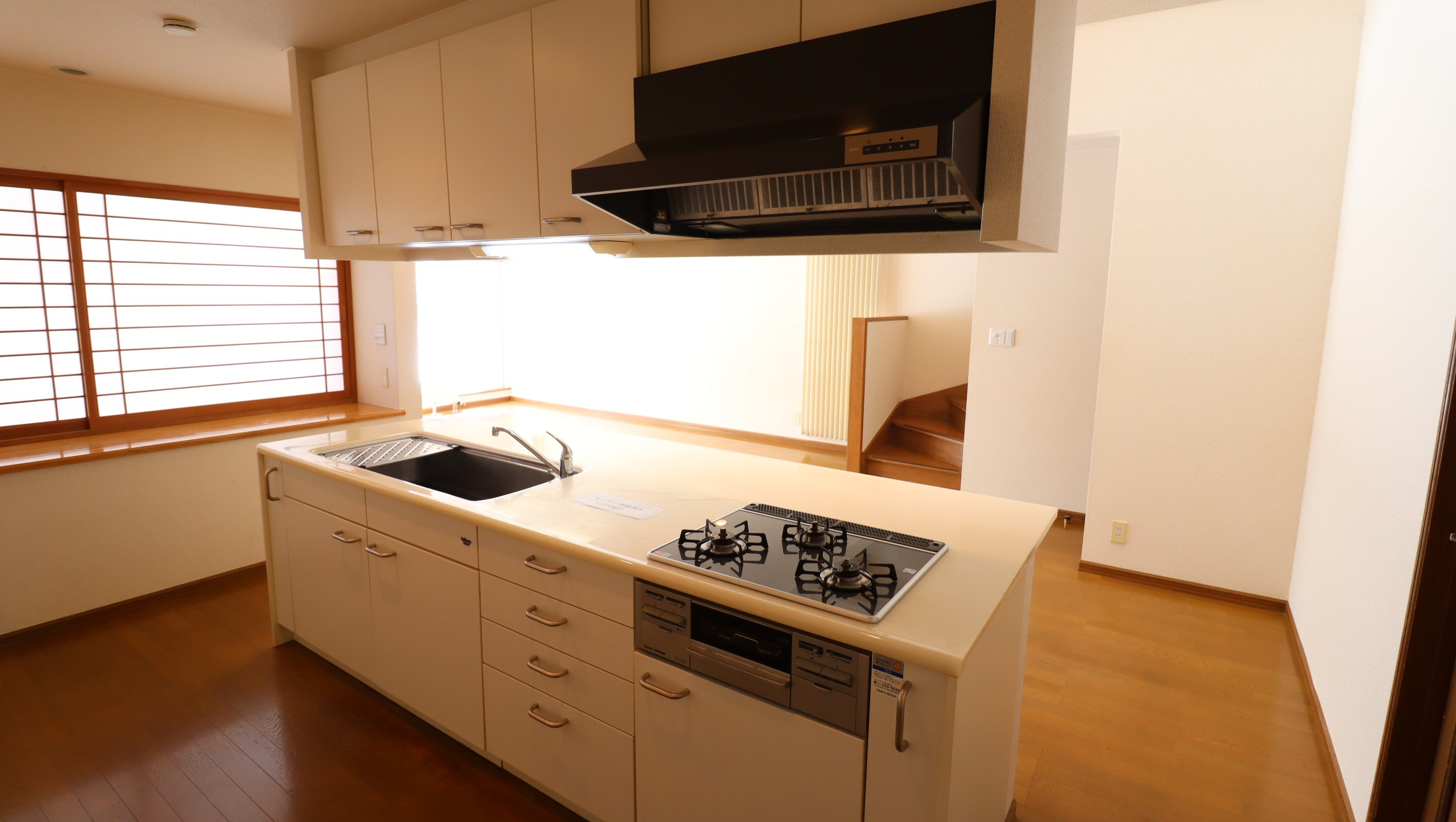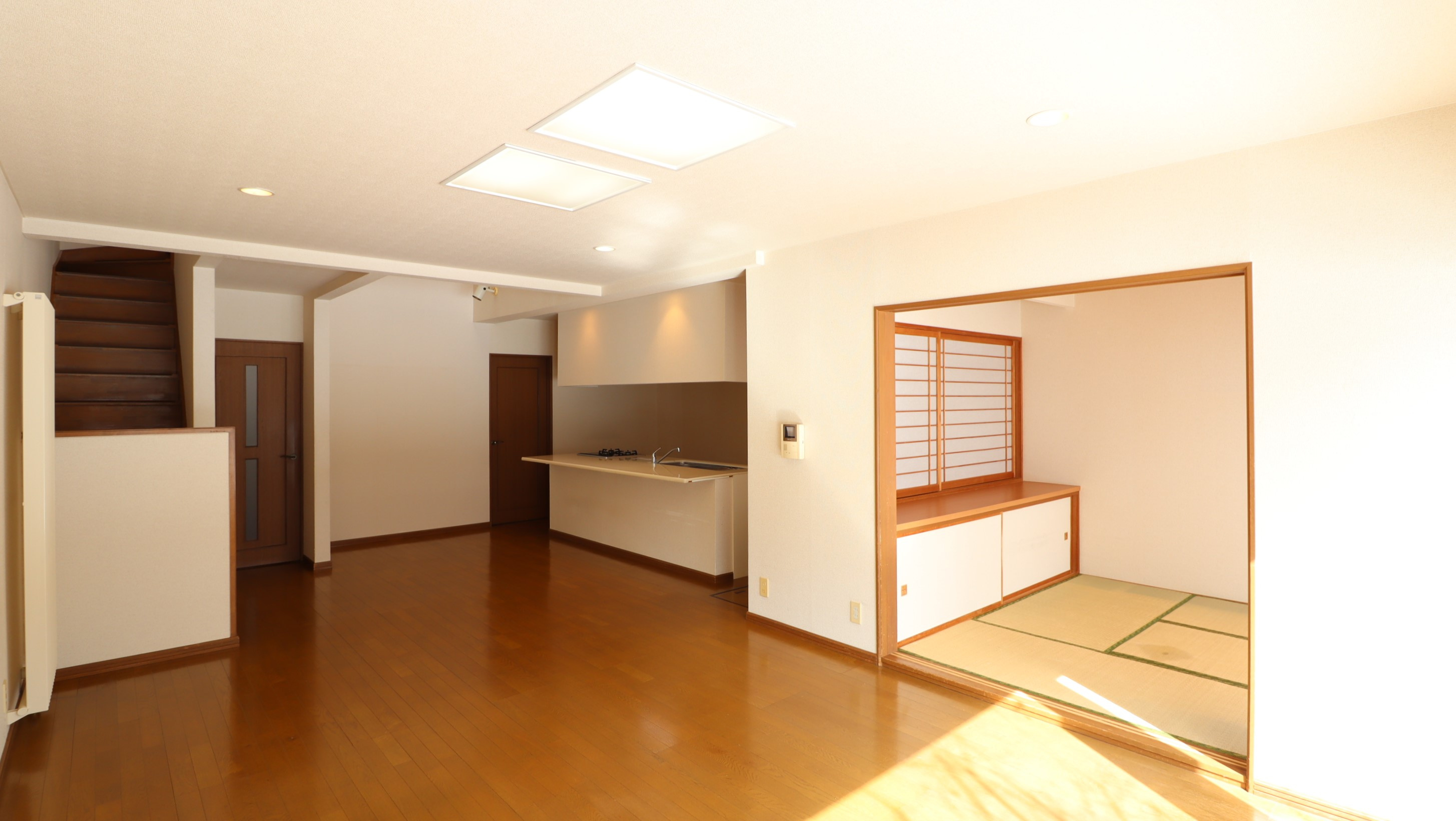 ■対面式キッチン、リビング横の和室で開放的・陽当り良好な20帖LDK